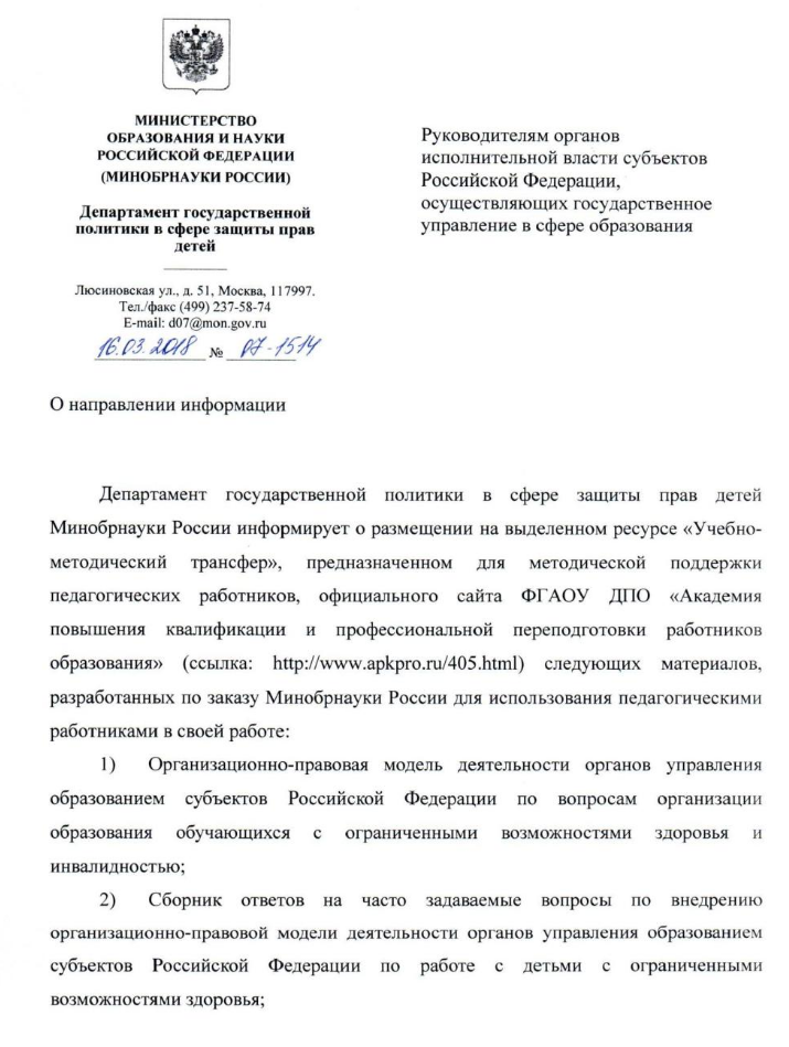4. Методические рекомендации по организации работы по социально-бытовой адаптации детей-инвалидов; скачать